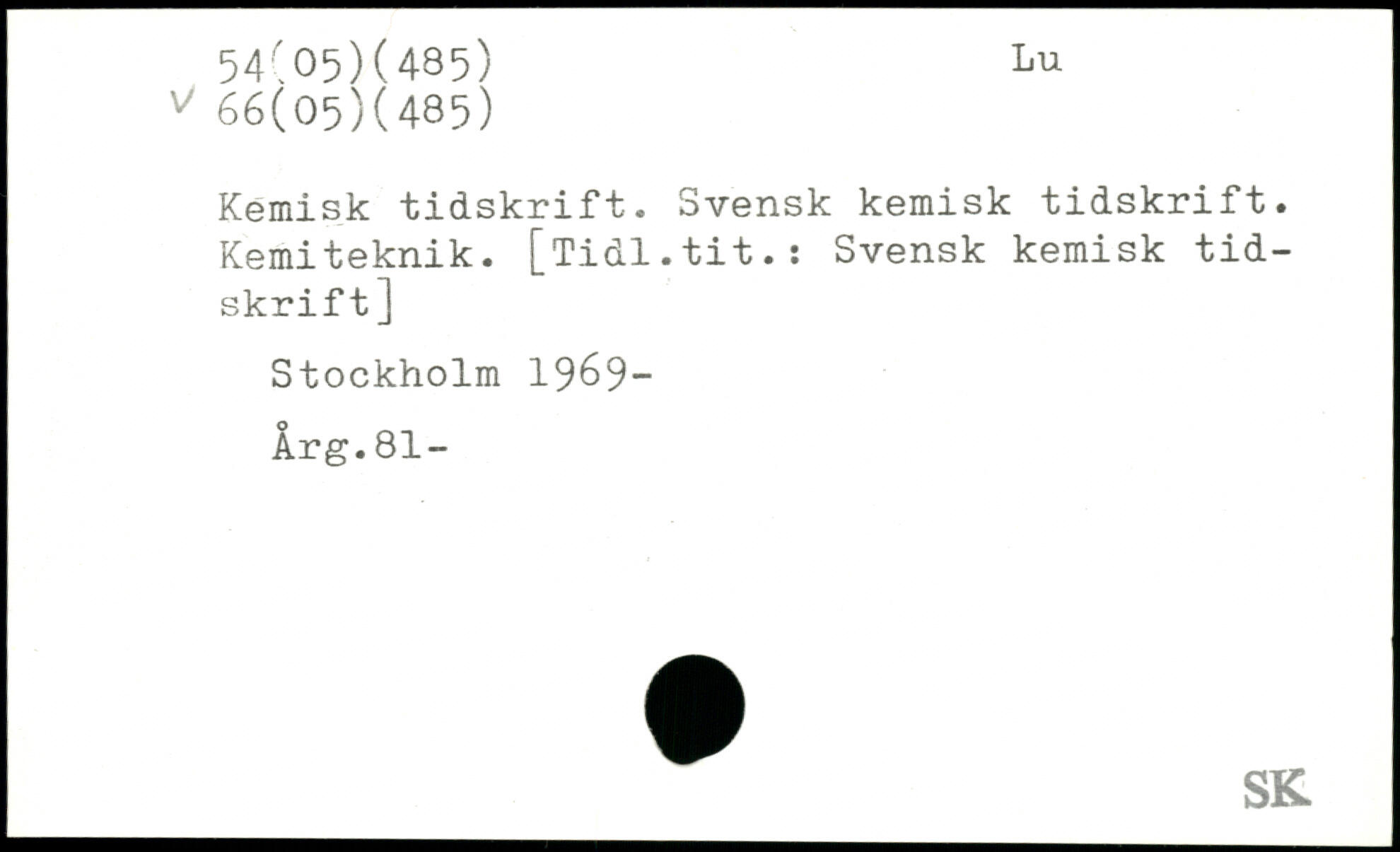 Kemisk tidskrift. Svensk kemisk tidskrift. Kemiteknik. [Tidl.tit.: Svensk kemisk tidskrift]