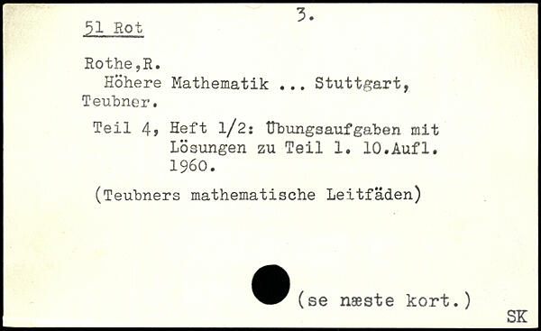 Höhere Mathematik ... Stuttgart, Teubner. Teil 4t Heft l/2: Übungsaufgaben mit Lösungen zu Teil 1.