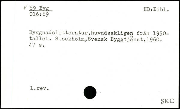 Byggnadslitteratur,huvudsakligen från 1950-tallet.