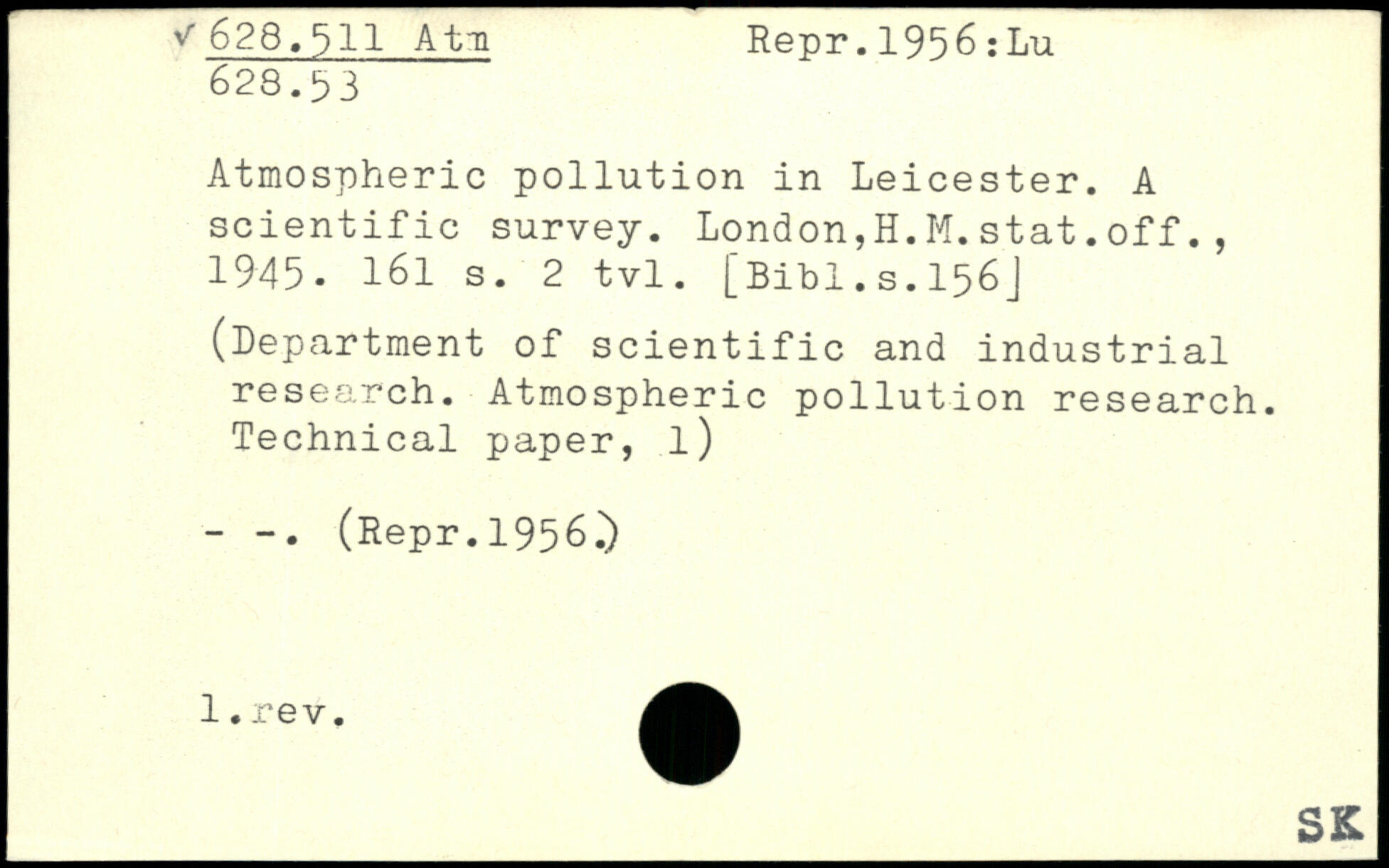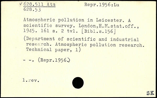 Atmospheric pollution in Leicester. A scientific survey. London,H.M.stat.off., 1945-