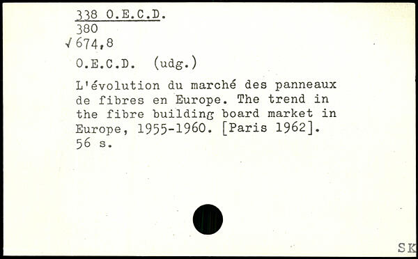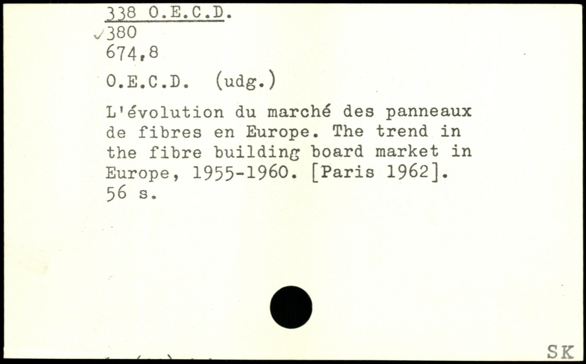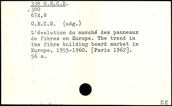 L'évolution du marché des panneaux de fibres en Europe. The trend in the fibre building board market in Europe, 1955-1960.