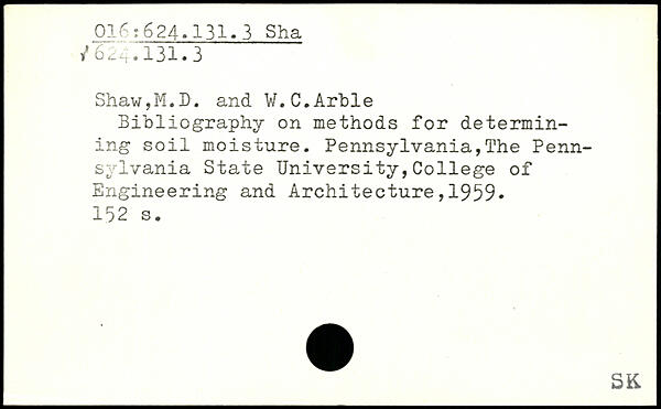 Bibliography on methods for determining soil moisture. Pennsylvania,The Pennsylvania State University,College of Engineering and Architecture,1959