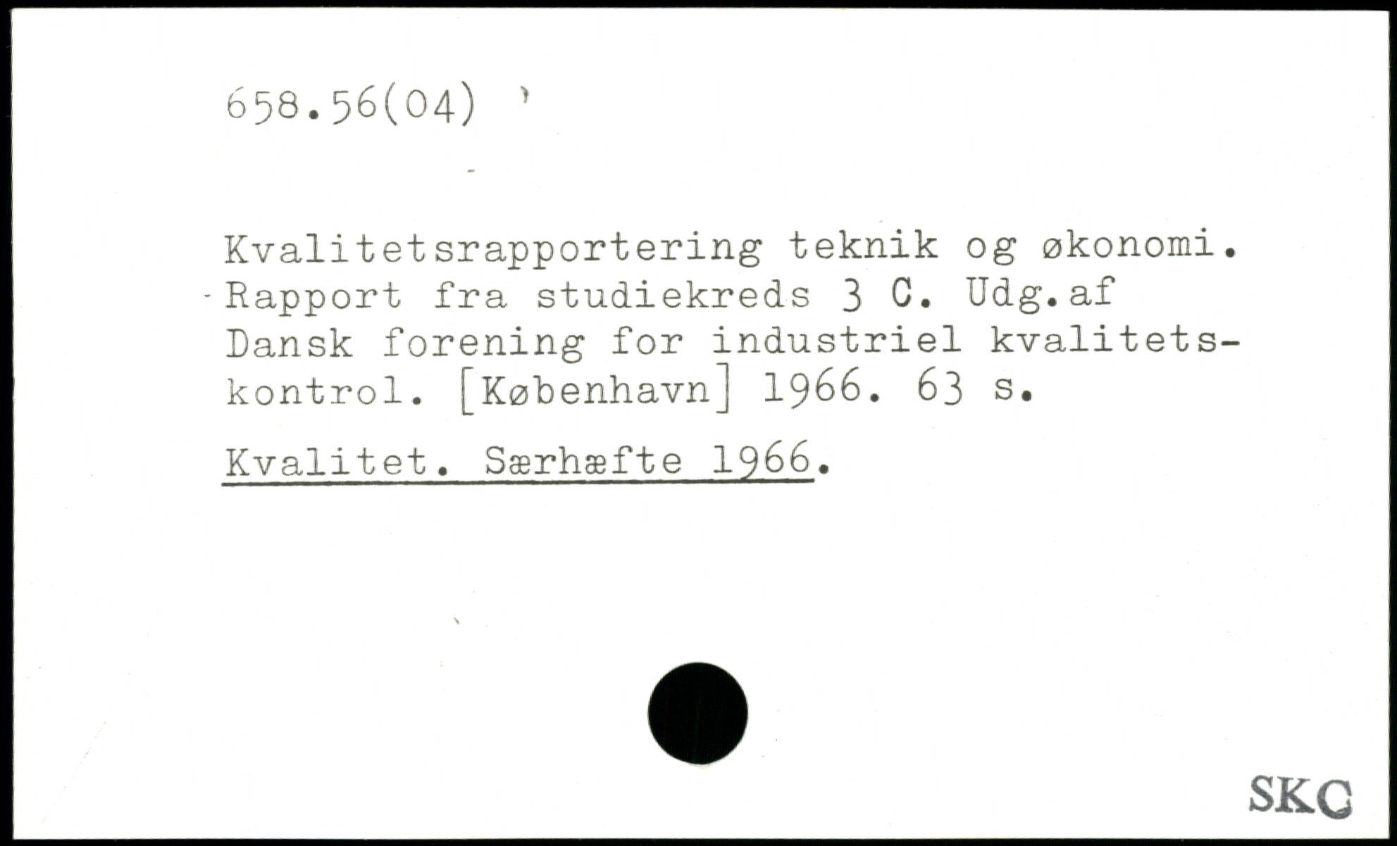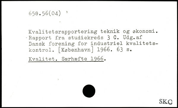 Kvalitetsrapportering teknik og økonomi. -Rapport fra studiekreds 3 C, Udg.af Dansk forening for industriel kvalitetskontrol.