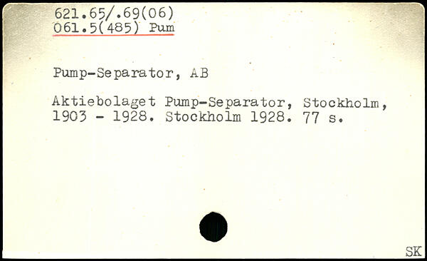 Sted: Pump-Se para tor, AB Aktiebolaget Pump-Separator