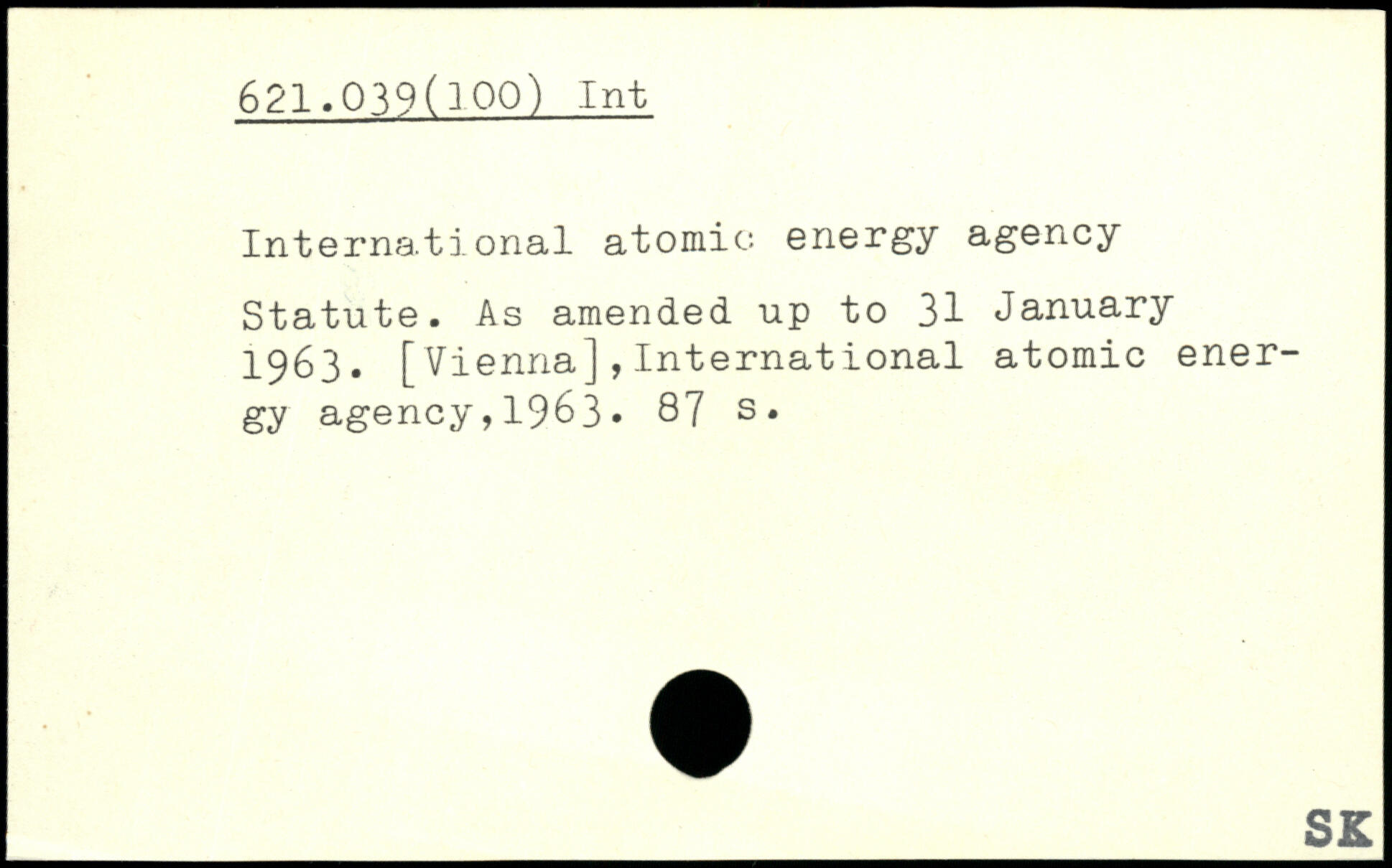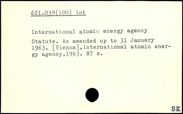 International atomic energy agency Statute. As amended up to 31 January 1963. [Vienna],International atomic energy agency,1963