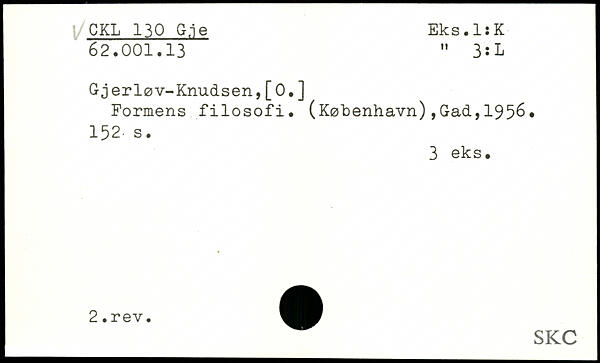 G j erløv-Knudsen, [ 0. ] Formens filosofi. (København),Gad,1956. 152- s.