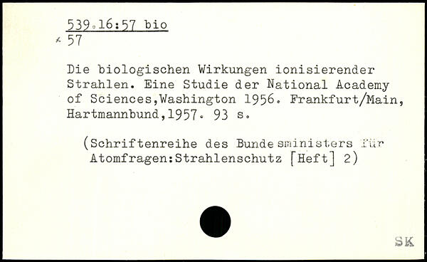 Die biologischen Wirkungen ionisierender Strahlen. Eine Studie der National Academy of Sciences