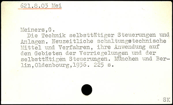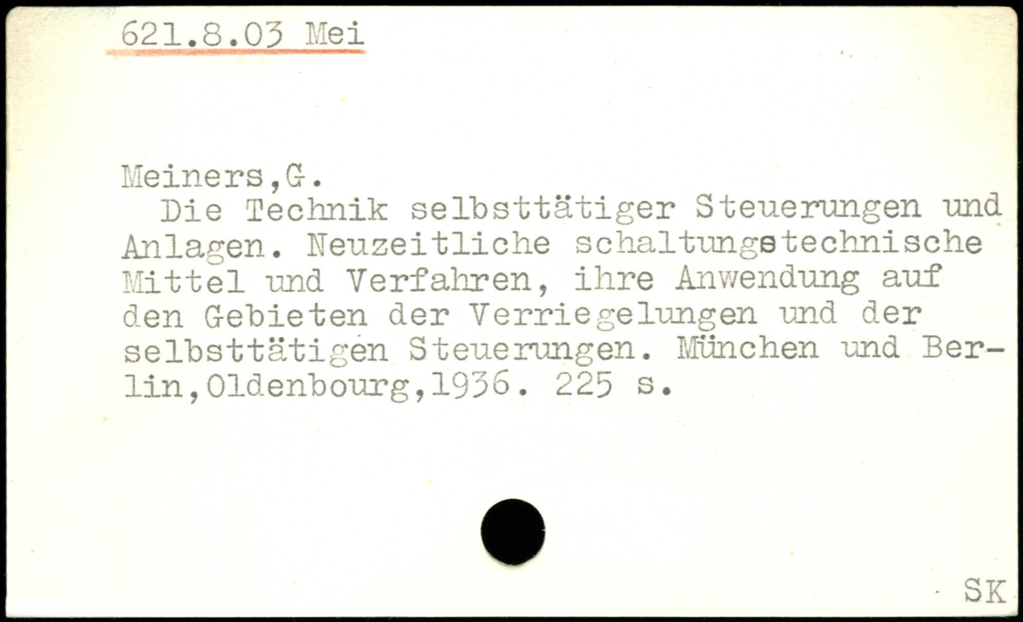 Die Technik selbsttätiger Steuerungen und Anlagen. Heuzeitliche schaltungetechnische Mittel und Verfahren, ihre Anwendung auf den G-ebieten der Verriegelungen und der selbsttätigen Steuerungen. München und Berlin, Oldenbourg,193$.