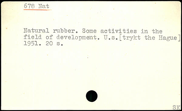 Natural rubber. Some activities in the field of development. U.s.[trykt the