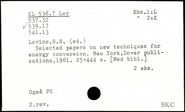 Selected papers on new techniques for energy conversion.