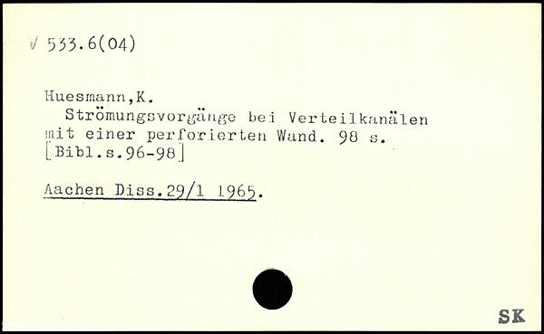 Stromungsvorgange bei Verteilkanälen mit einer perforierten Wand.