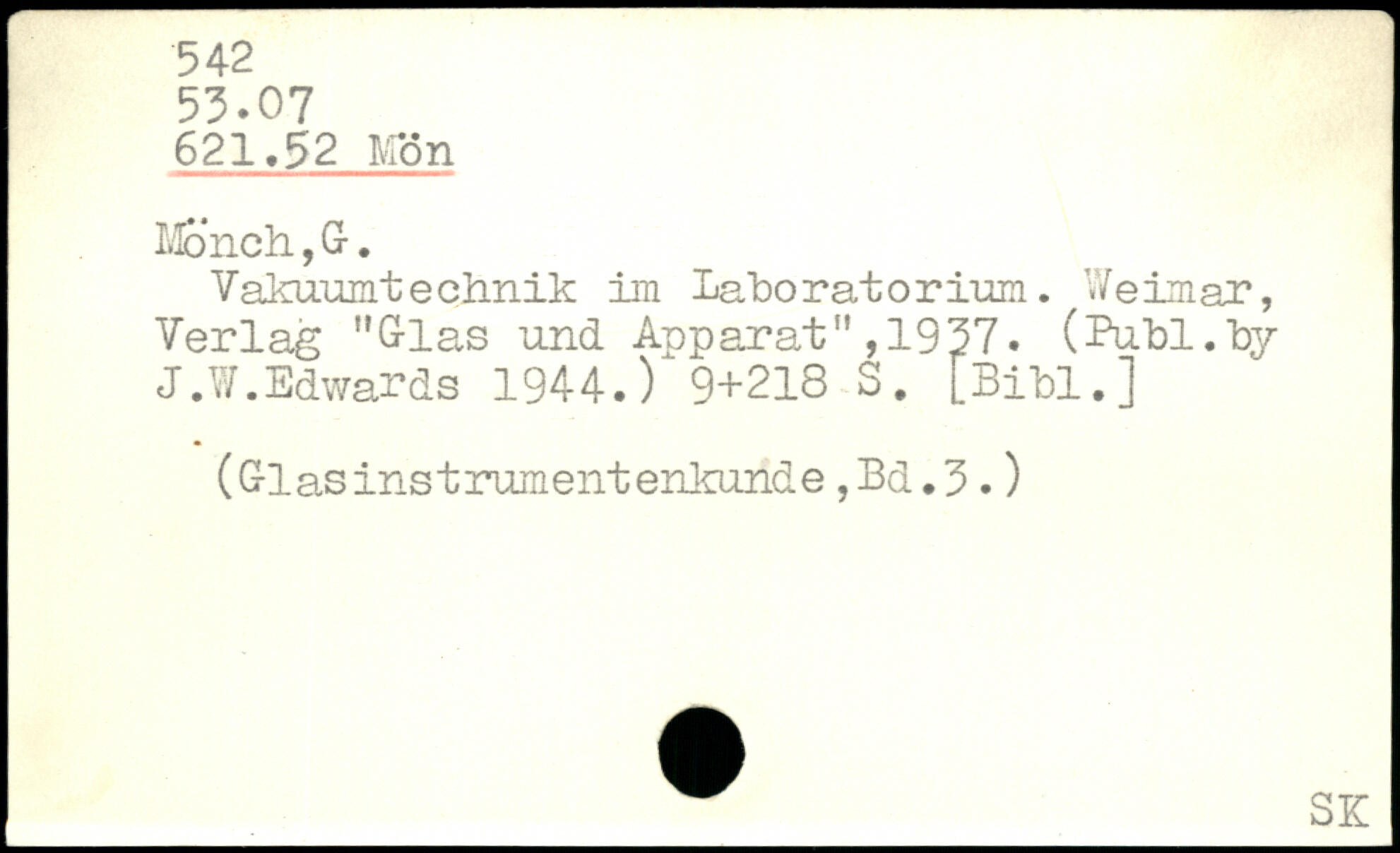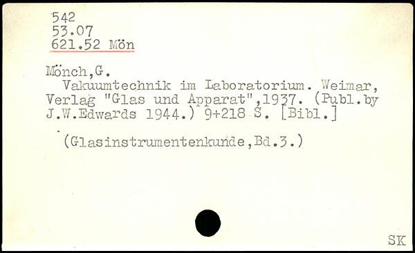 Valommtechnik im Laboratorium. Weimar, Verlag "Glas und Apparat",1937. (