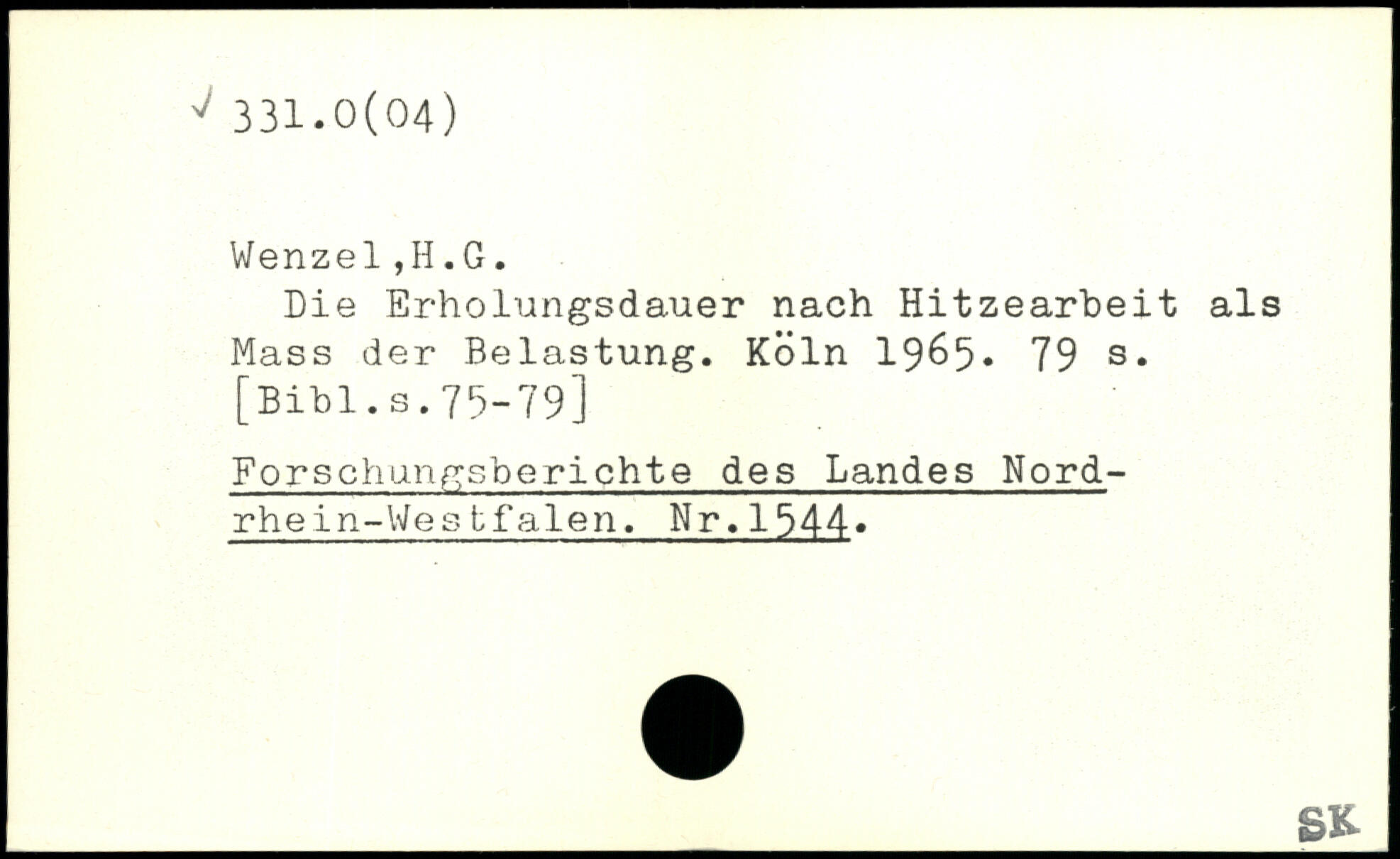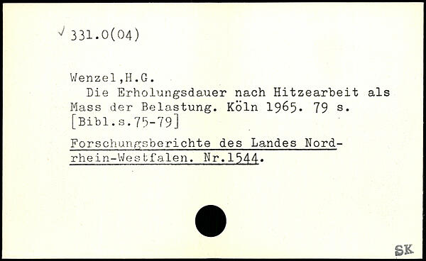 Die Erholungsdauer nach Hitzearbeit als Mass der Belastung. Köln 19&5.