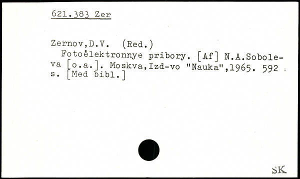 Fotoelektronnye pribory. [Af] N.A.Soboleva _o.a.]. Moskva,Izd-vo "Nauka".1965.