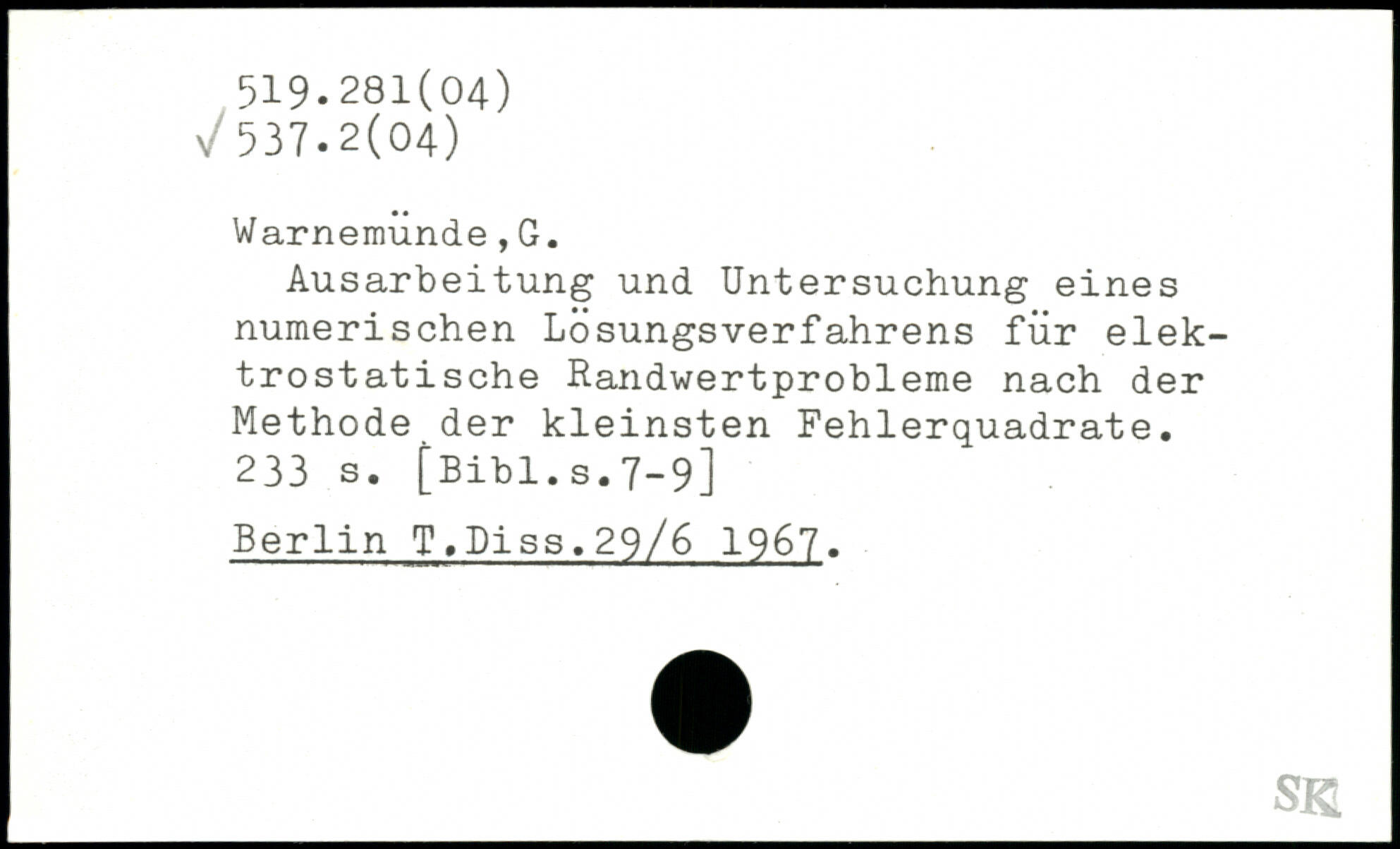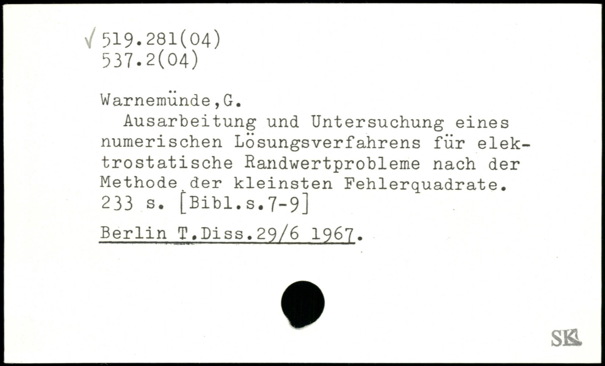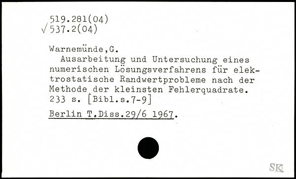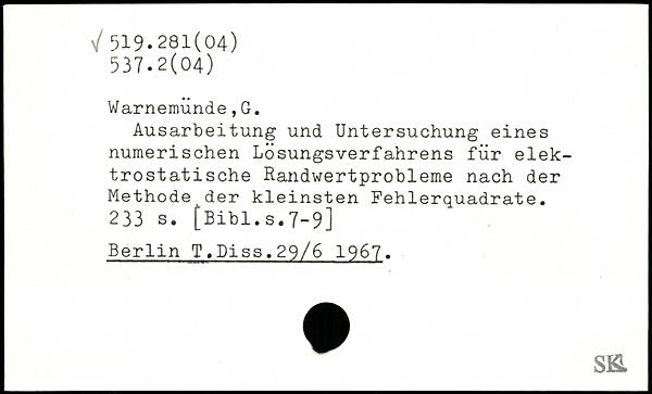 Ausarbeitung und Untersuchung eines numerischen Lösungsverfahrens für elektrostatische Randwertprobleme nach der Methode der kleinsten Fehlerquadrate.
