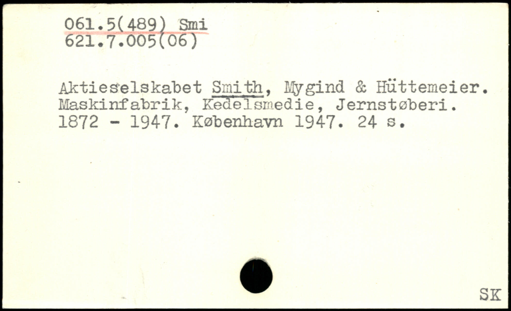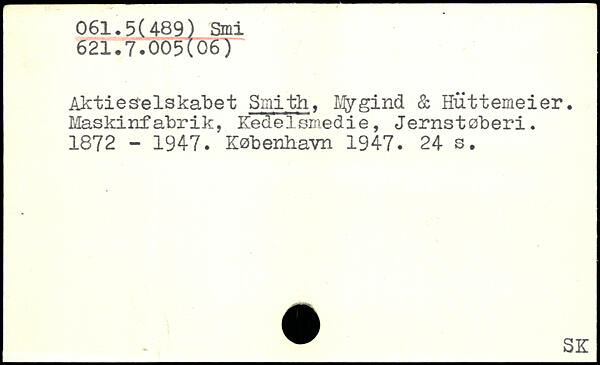 Aktie se Is kåbe t Smith, L^ygind & Huttemeier. Maskinfabrik, KedeTsmedie, Jernstøberi. 1872 - 1947.