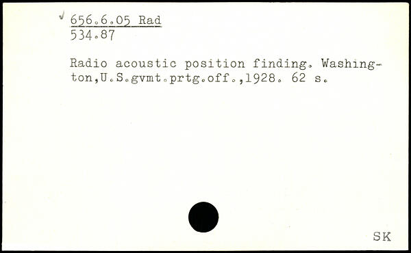Radio acoustic position finding. Washington, U.SogvmtoprtgoOffo,1928. 62