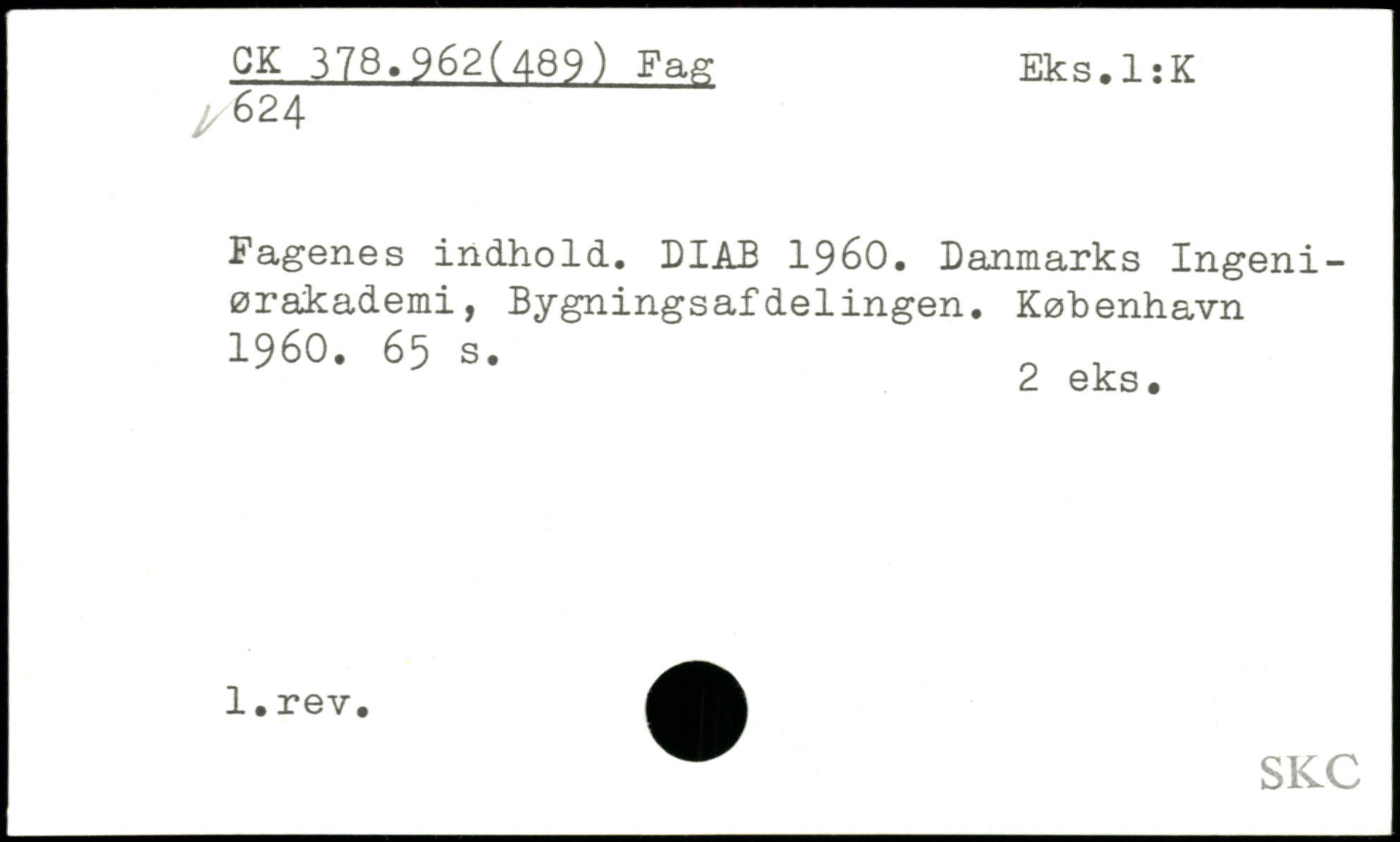Fagenes indhold. DIAE 1960. Danmarks Ingeniørakademi, Bygningsafdelingen. København 196.-