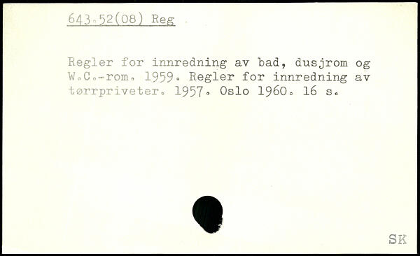 Regler for innredning av bad, dusjrom og WoC0-rom, 1959, Regler for innredning av tørrpriveter, 1957, Oslo 1960