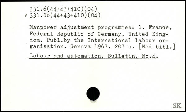 Manpower adjustment programmes: 1. France, Federal Republic of Germany, United Kingdom.