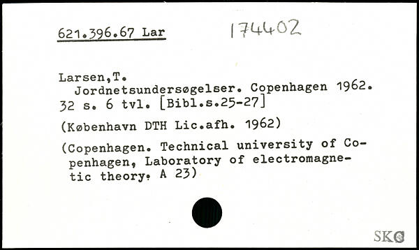 Jordnetsundersøgelser. Copenhagen 19.2.