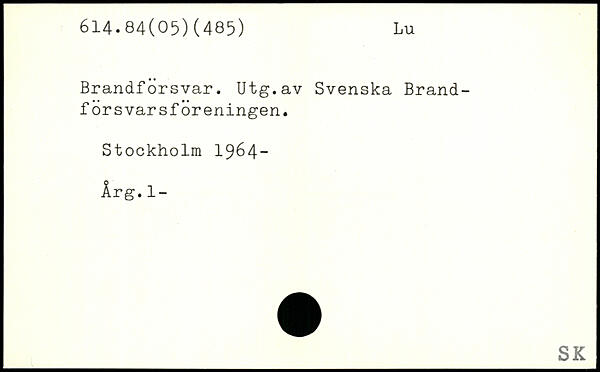 Brandförsvar. Utg.av Svenska Brand-f orsvarsföreningen.
