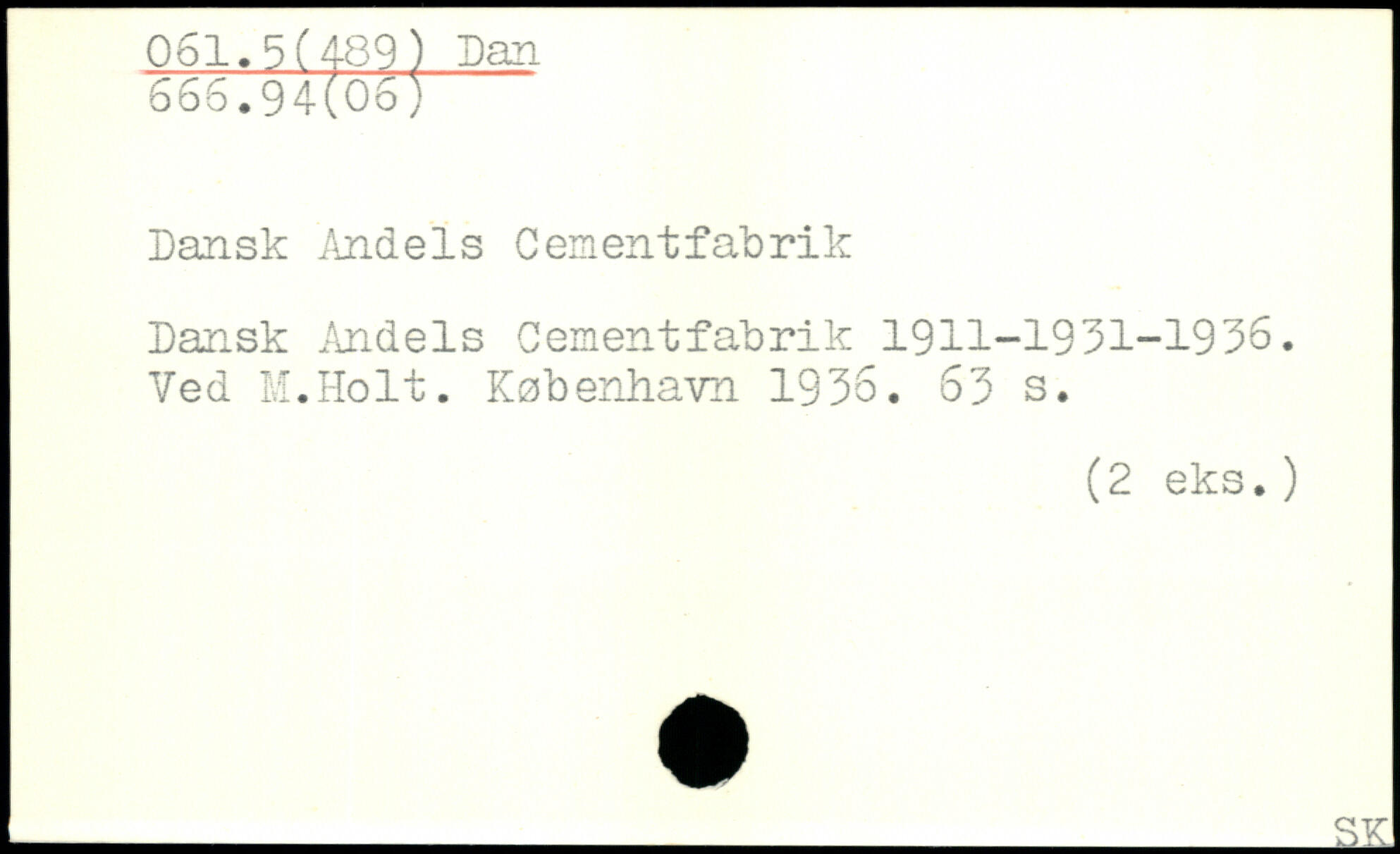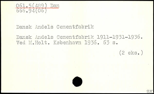 Dansk Andels Cementfabrik Dansk Andels Cementfabrik 1911-1931-1936. Ved M.Holt.