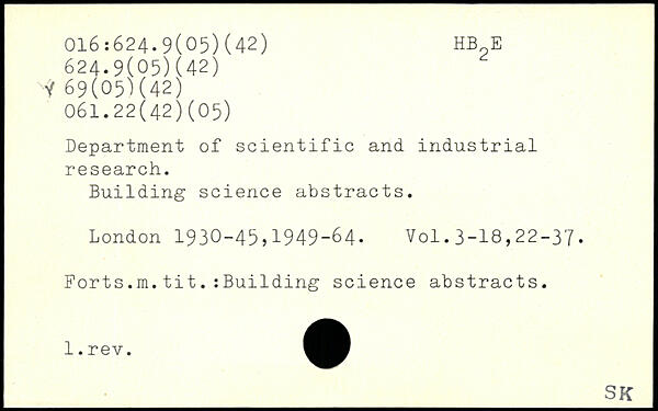 Department of scientific and. industrial research. Building science abstracts.