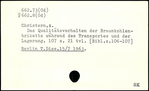 Das Qualitatsverhalten der Braunkohlenbriketts wahrend des Transportes und der Lagerung.
