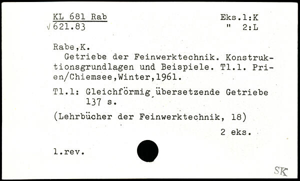Getriebe der Feinwerktechnik. Konstruk-t ionsgrundlagen und Beispiele. Tl.l.