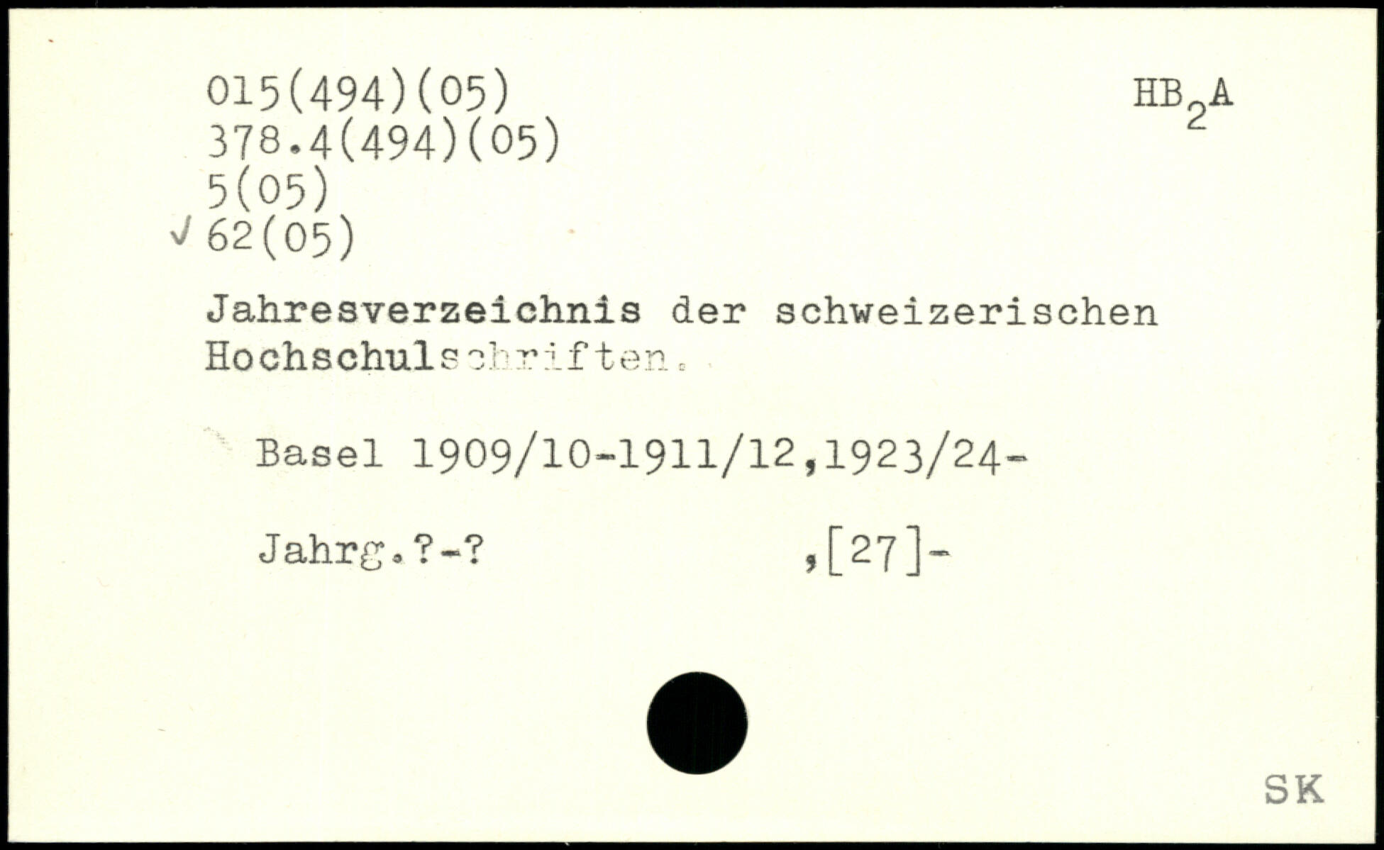 UDK: 015(494)(05), 378.4(494)(05), 5(05), 62(05)