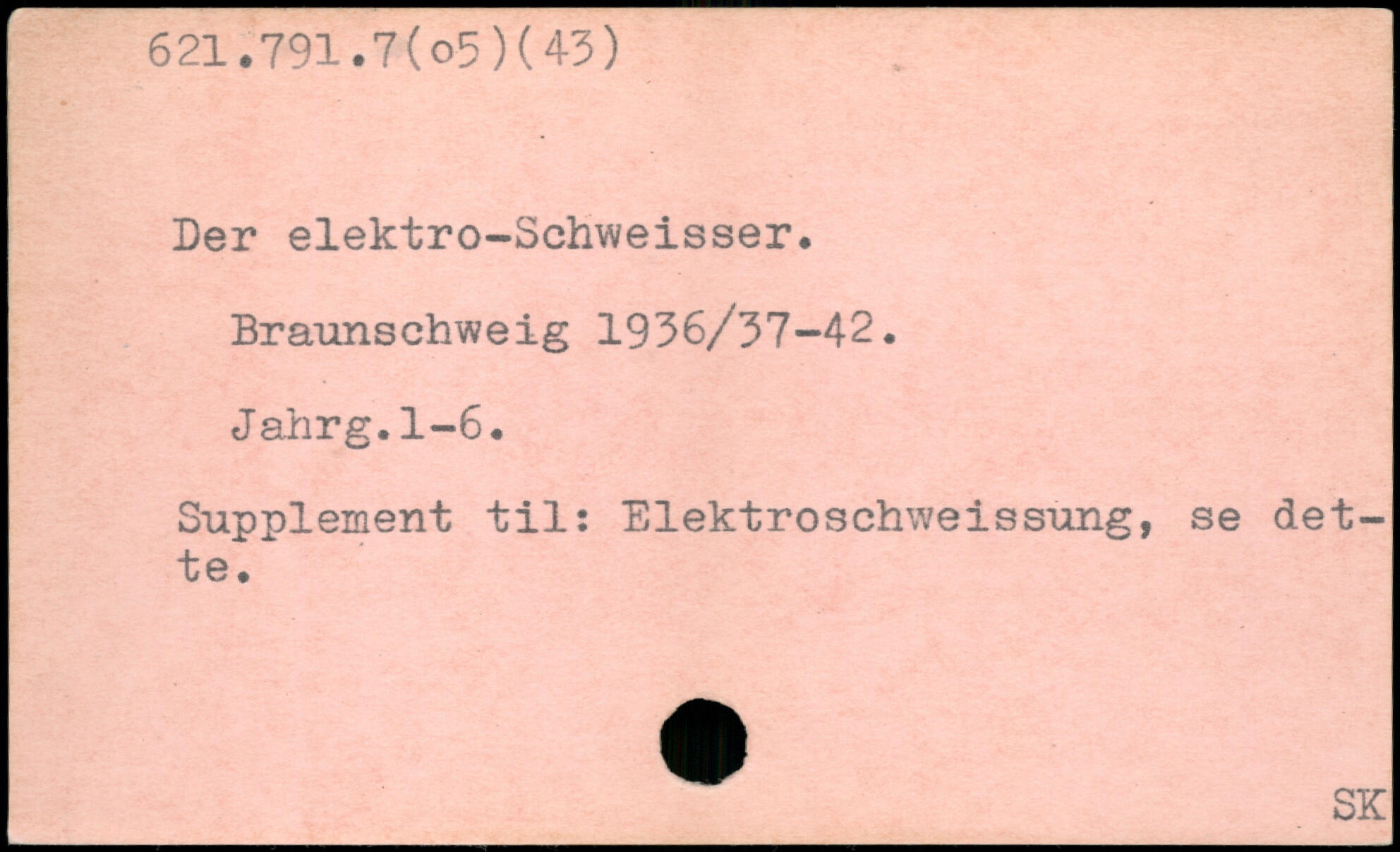 Der elektro-Schweisser. Braunschweig 1936/37-42. Jahrg.1-6. Supplement tils Elektroschweissung, se dette.