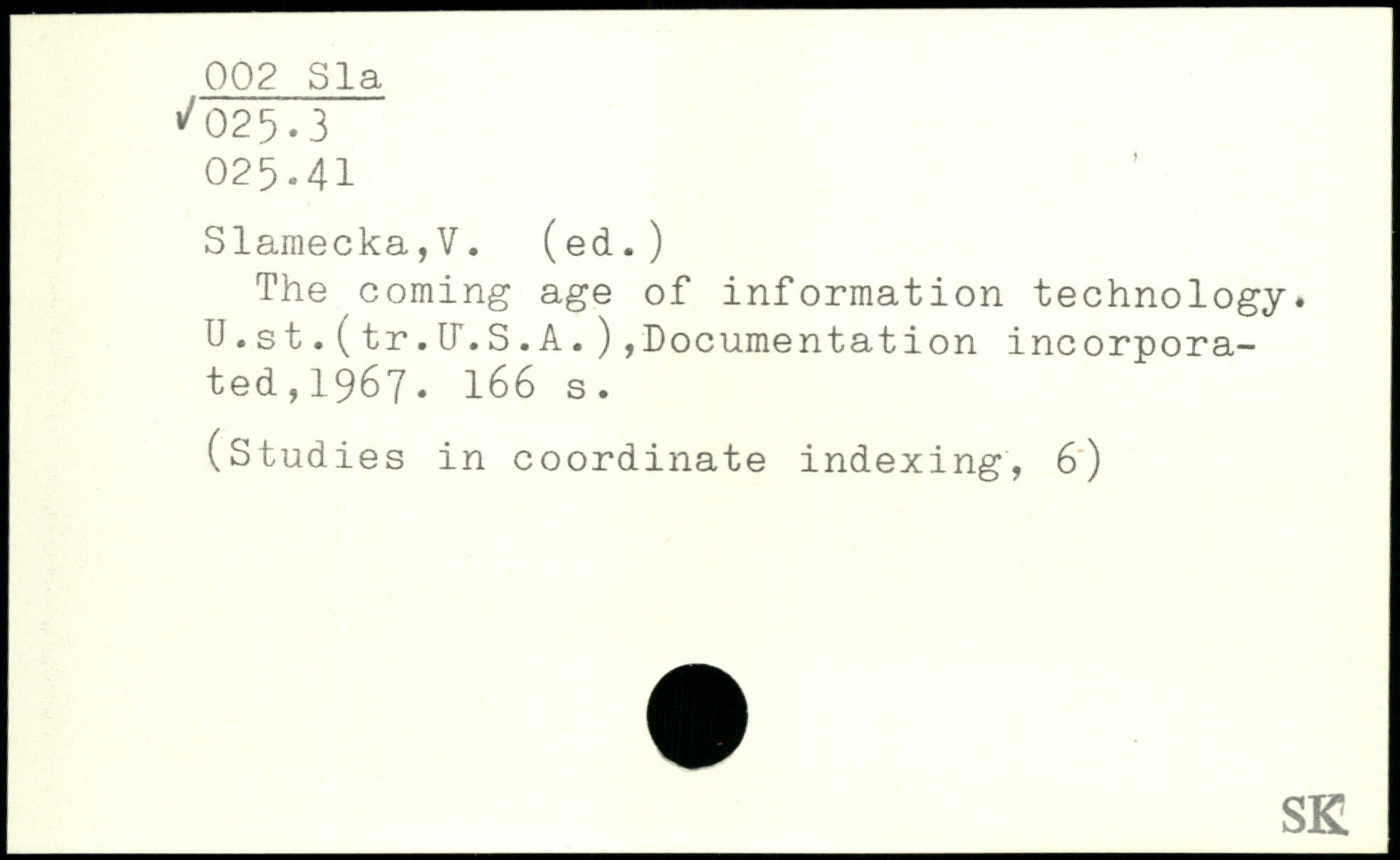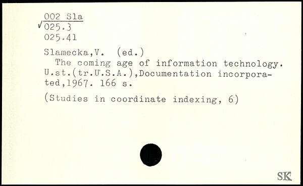 The coming age of information technology. U.st.(tr.h.S.A.),Documentâtion incorporated, 1967. l