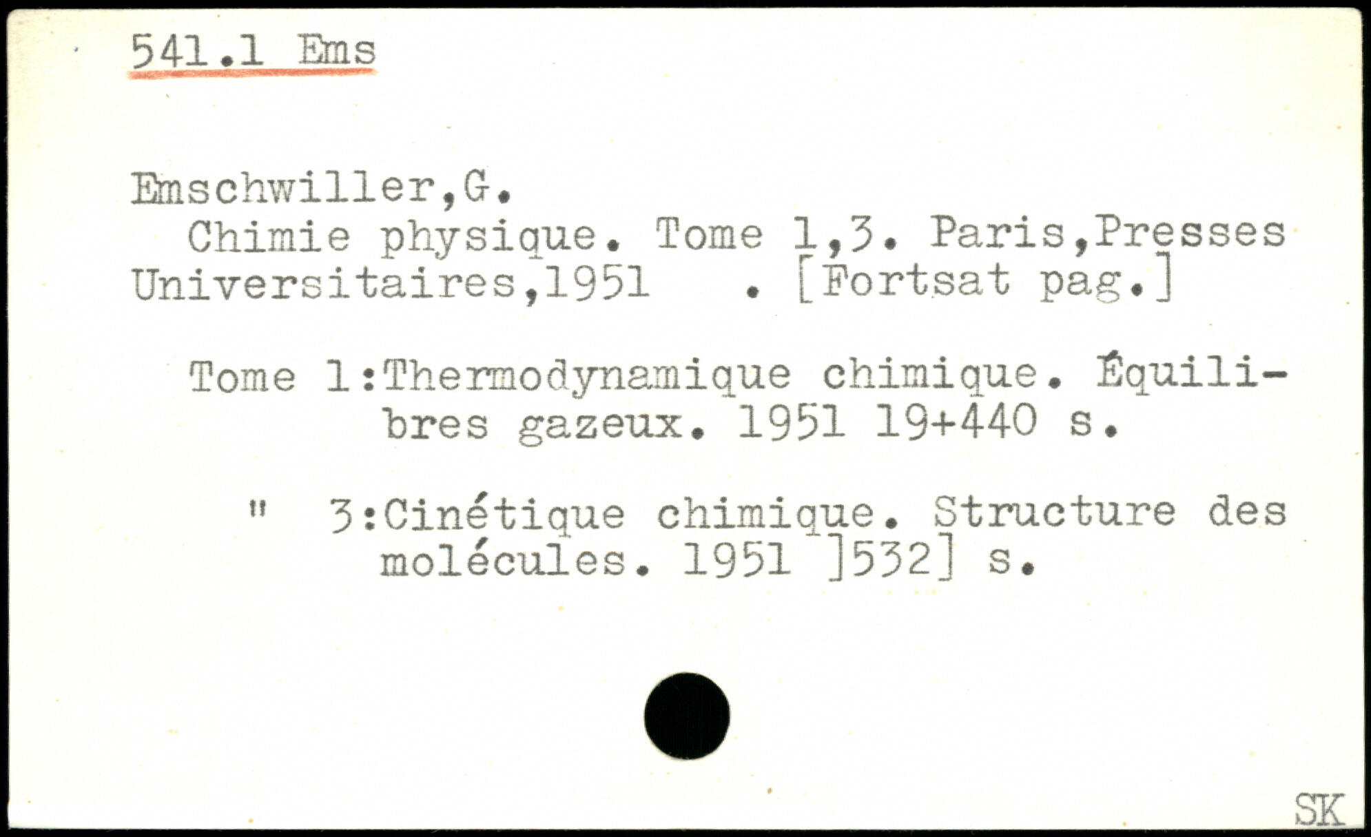 Chimie physique. Tome 1,3. Paris,Presses Universitaires.1951.
