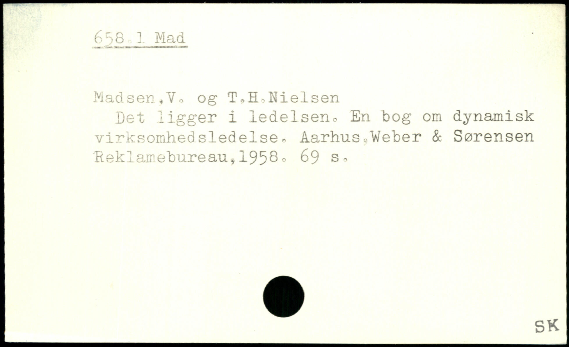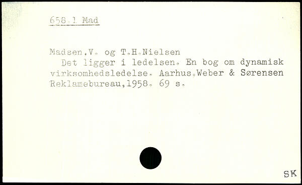 Madsen^Vr, og IhBhNielsen Det ligger i ledelsen., En bog om dynamisk virksomhedsledelse. Aarhus =.Weber & Sørensen 'Reklamebureau, 19580