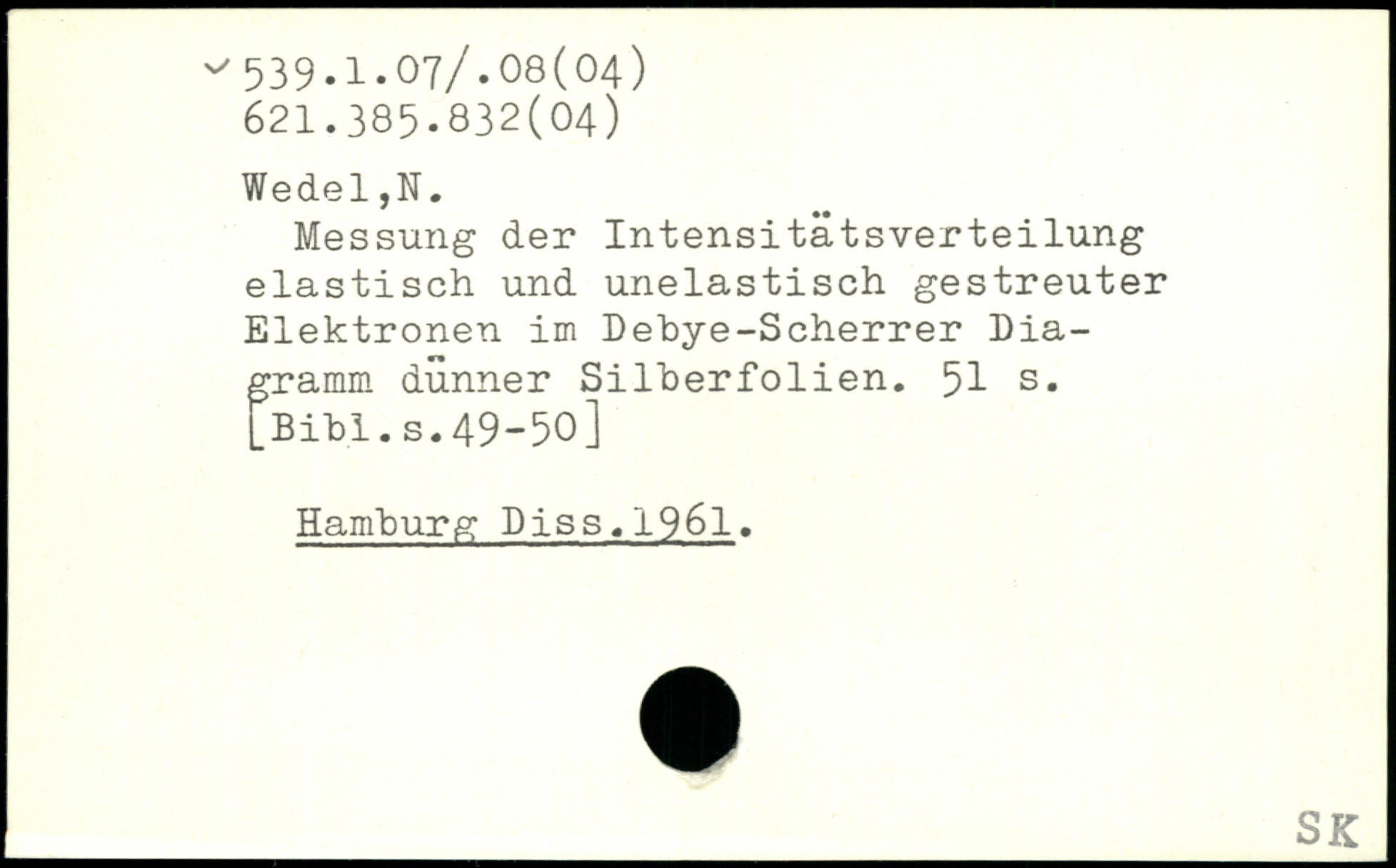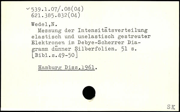 Messung der Intensitätsverteilung elastisch und unelastisch gestreuter Elektronen im Debye-Scherrer Diagramm dünner Silberfolien.