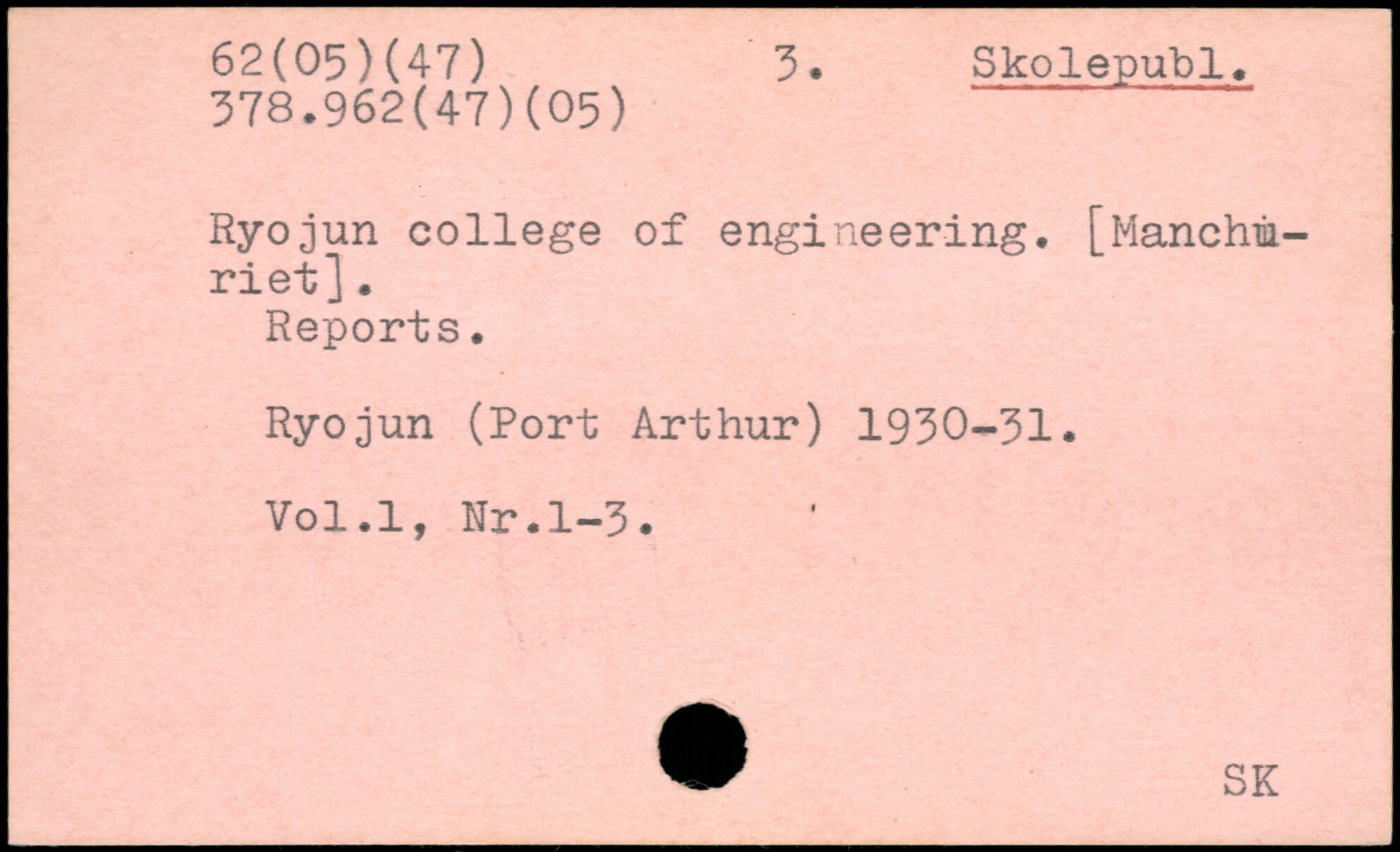 Ryojun college of engineering. [Manchm-riet]. Reports. Ryojun (Port Arthur) 1930-31.