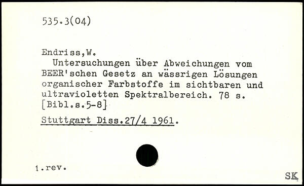 Untersuchungen über Abweichungen vom BEER'sehen Gesetz an wässrigen Lösungen organischer Farbstoffe im sichtbaren und ultravioletten Spektralbereich.