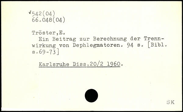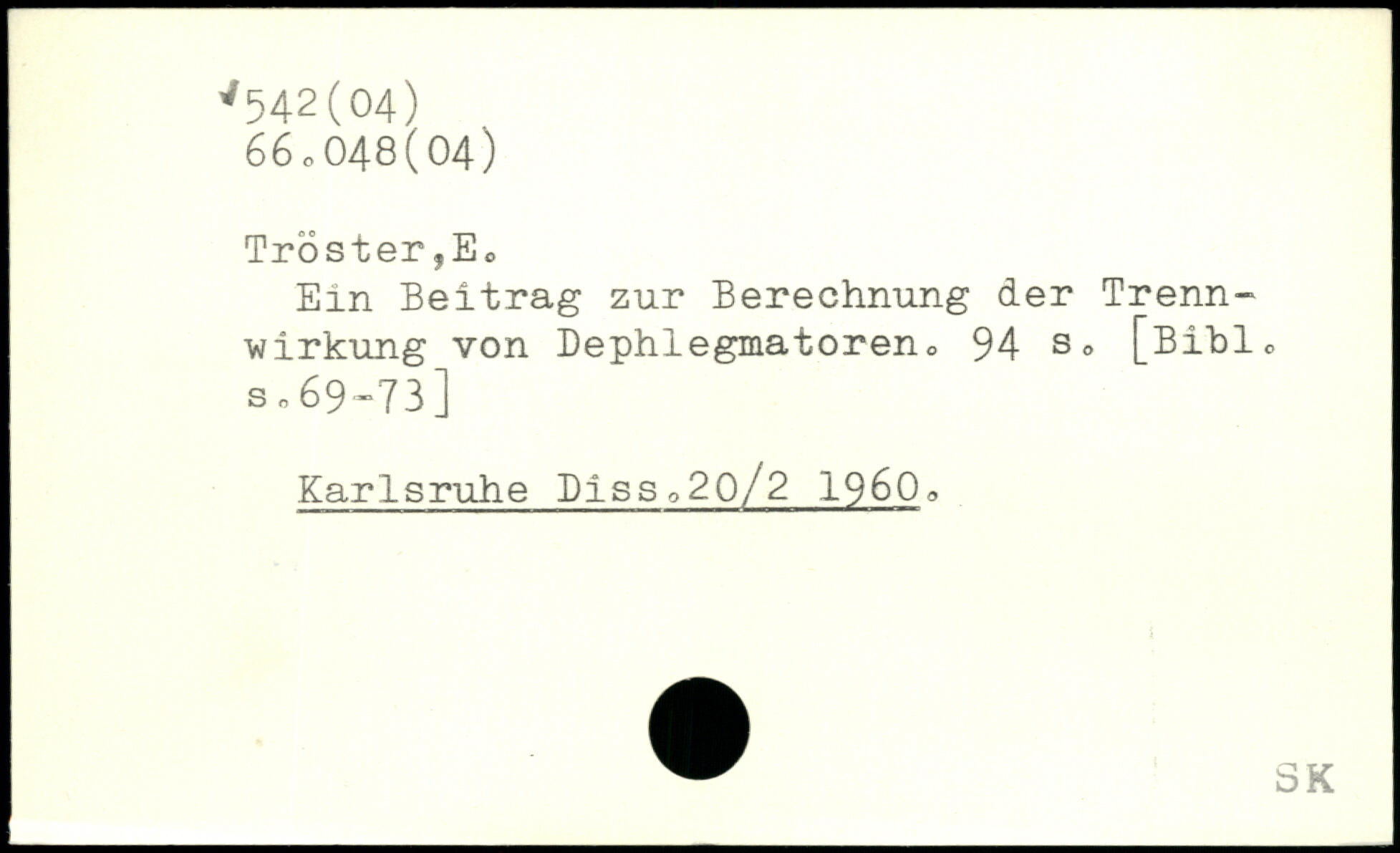 Tröster?Eo Ein Beitrag zur Berechnung der Trenn-Wirkung von Dephlegmatoren
