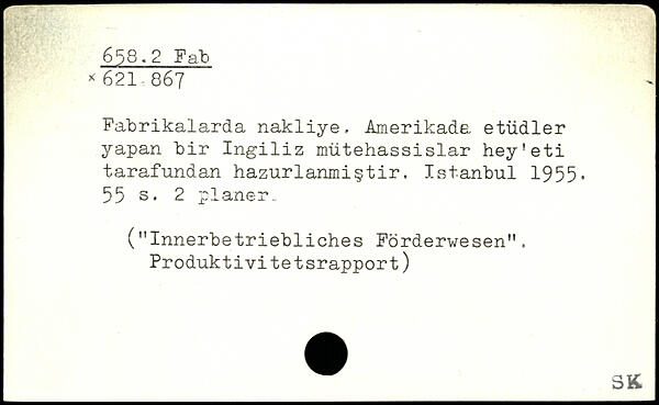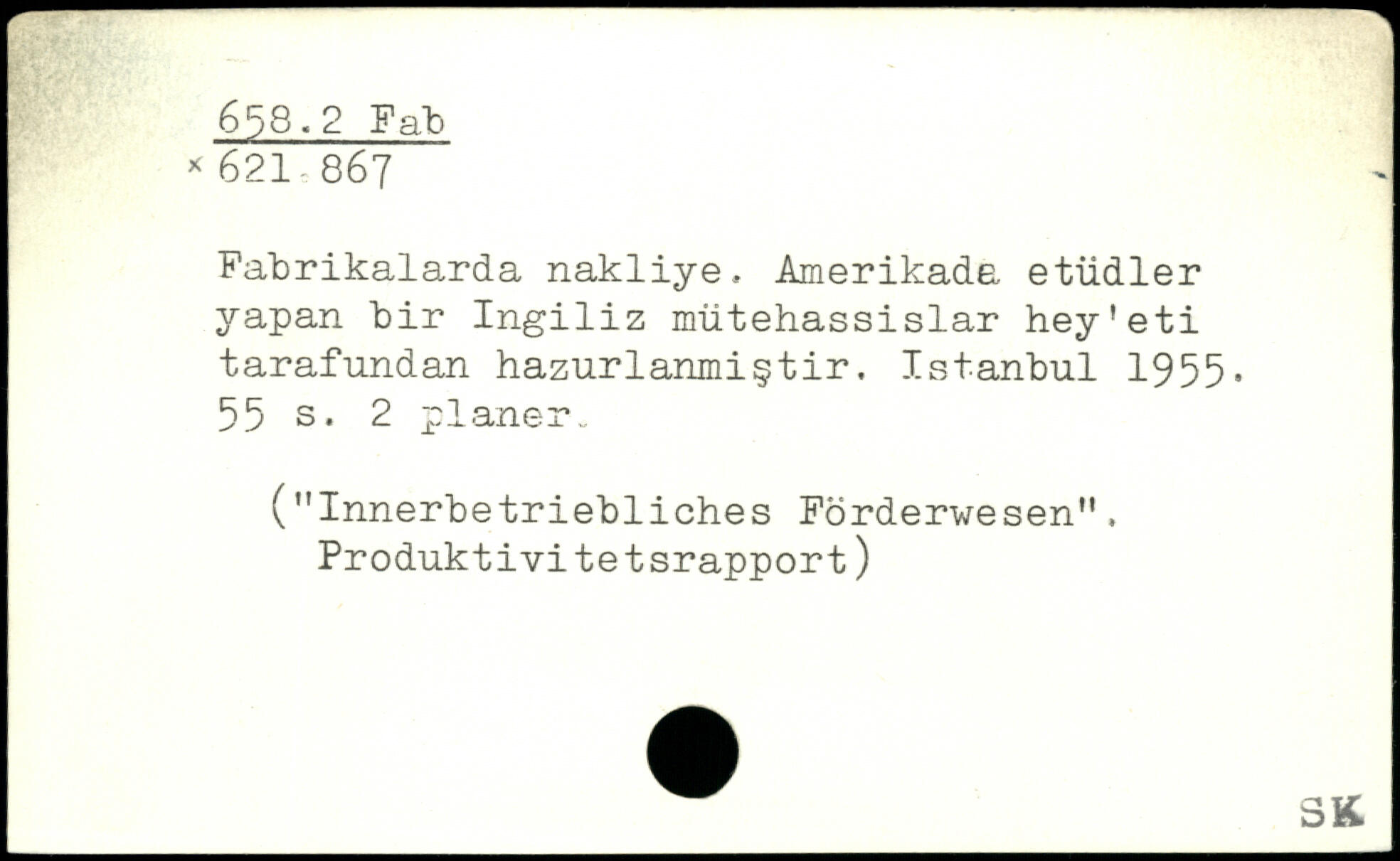 Fabrikalarda nakliye, Amerikada etüdler yapan dir Ingiliz mütehassislar hey'eti tarafundan hazurlanmi§tir. Istanbul 1955.