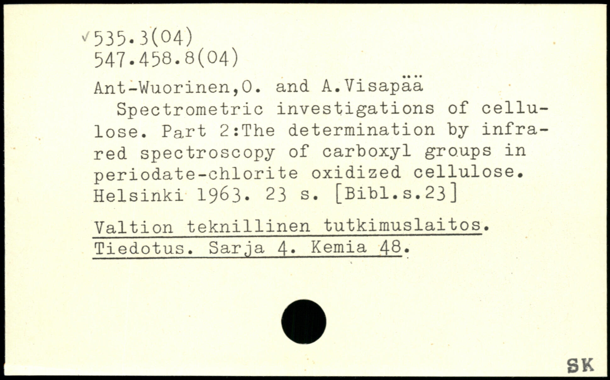 Spectrometric investigations of cellulose. Part 2:The determination by infrared spectroscopy of carboxyl groups in periodate-chlorite oxidized cellulose.
