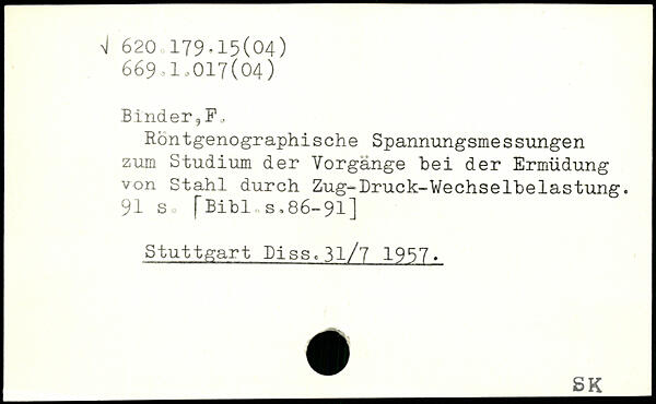 Röntgenographische Spannungsmessungen zum Studium der Vorgänge bei der Ermüdung von Stahl durch Zug-Bruck-Wechselbelastung.