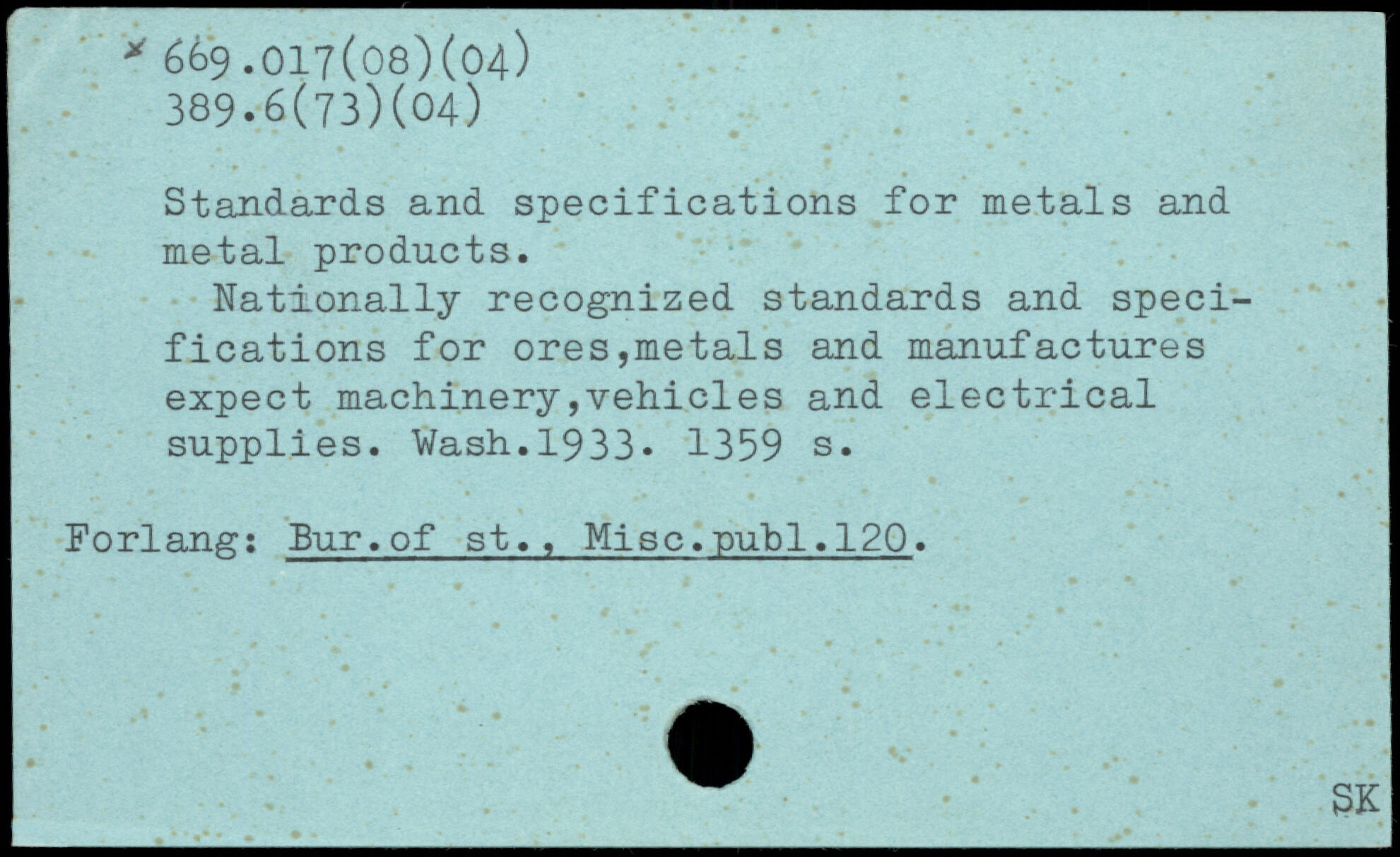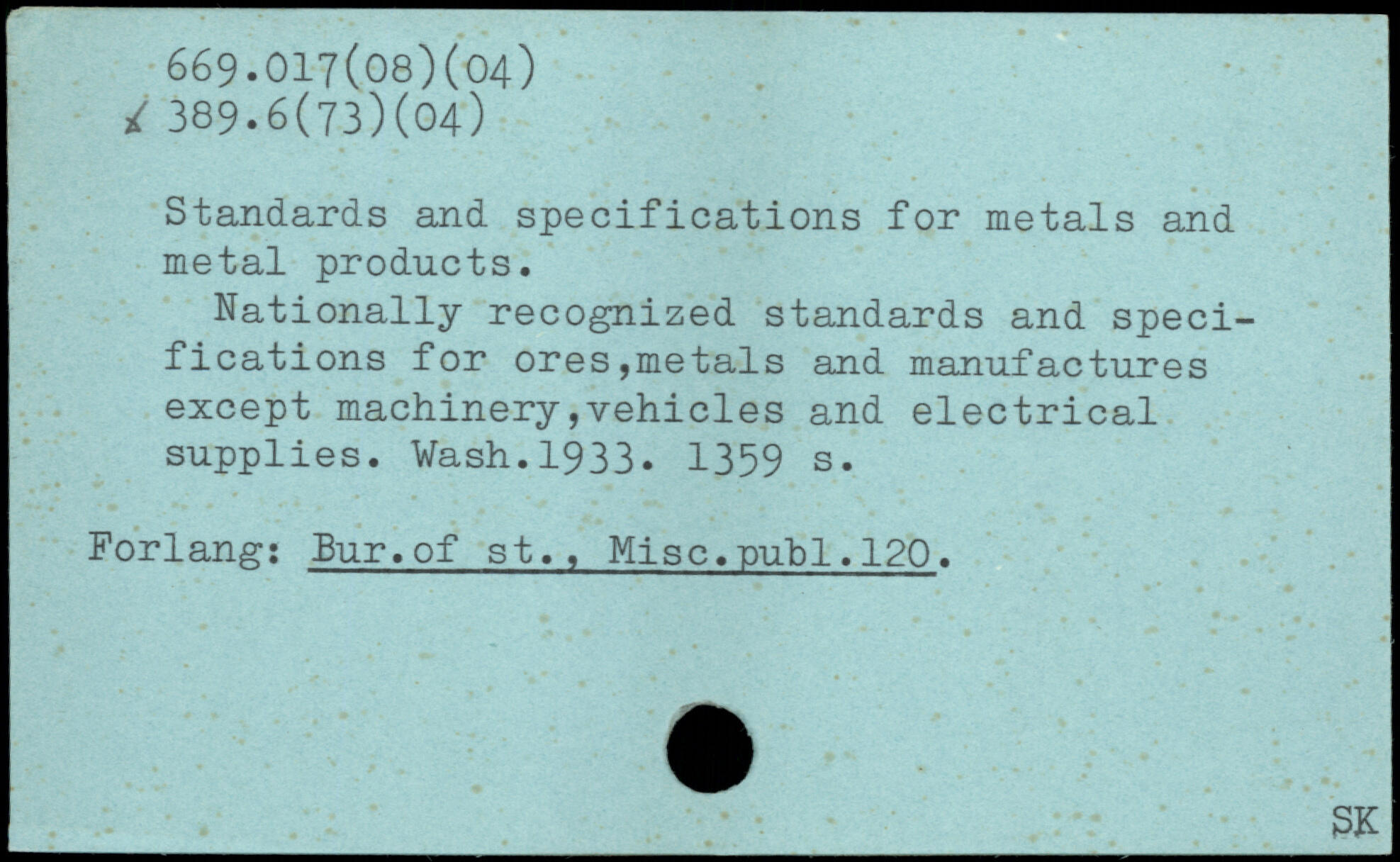 Standards and specifications for metals and metal products. Nationally recognized standards and specifications for ores,metals and manufactures expect machinery,vehicles and electrical supplies. Wash.1933.