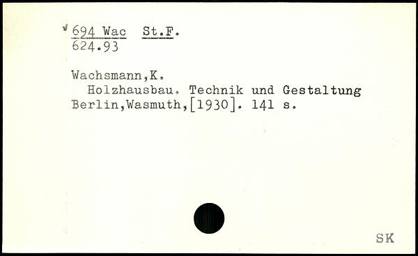 Holzhaus bau., Technik und Gestaltung Berlin,Wasmuth,[1930]. 141 s