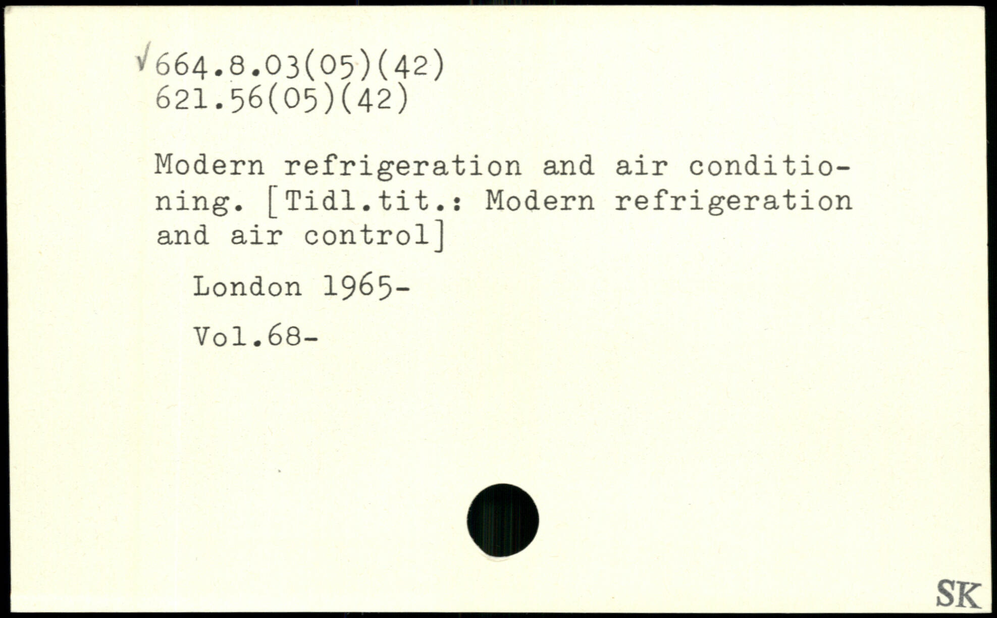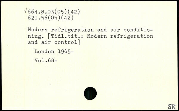 Modern refrigeration and air conditio- \ ning. [Tidl.tit.: Modern refrigeration and air control]