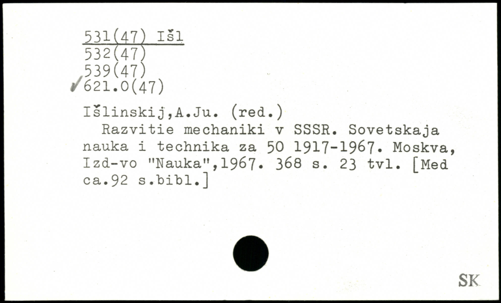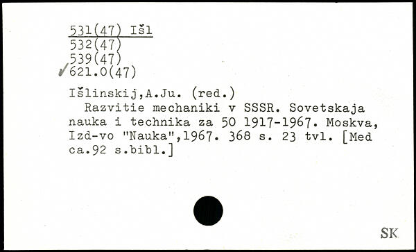 Islinskij,A.Ju. (red.) Razvitie mechaniki v SSSR. Sovetskaja nauka i technika za 50 1917-1967. Moskva, Izd-vo "Nauka”,1967.