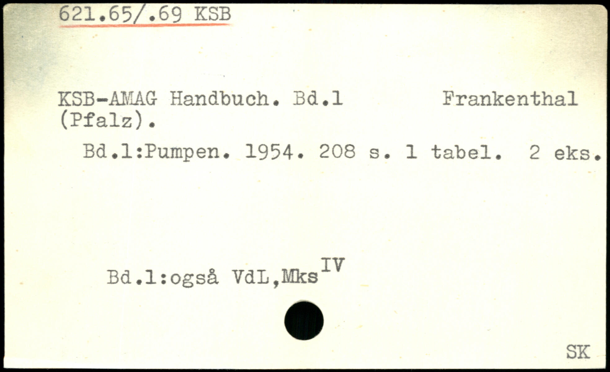 KSB-AMAG- Handbuch. Bd.l Prankenthal (Pfalz). Bd.liPumpen. 1954.