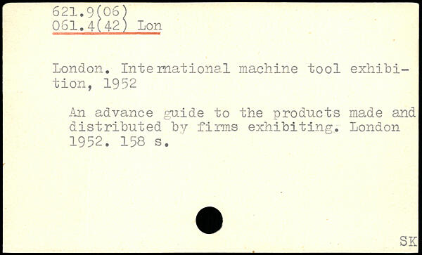 London. International machine tool exhibition, 1952 An advance guide to the products made and distributed by firms exhibiting.