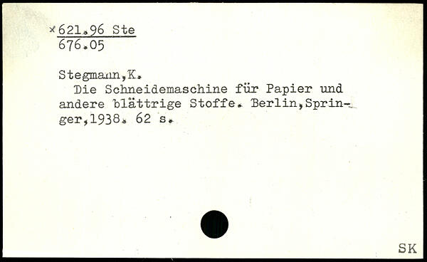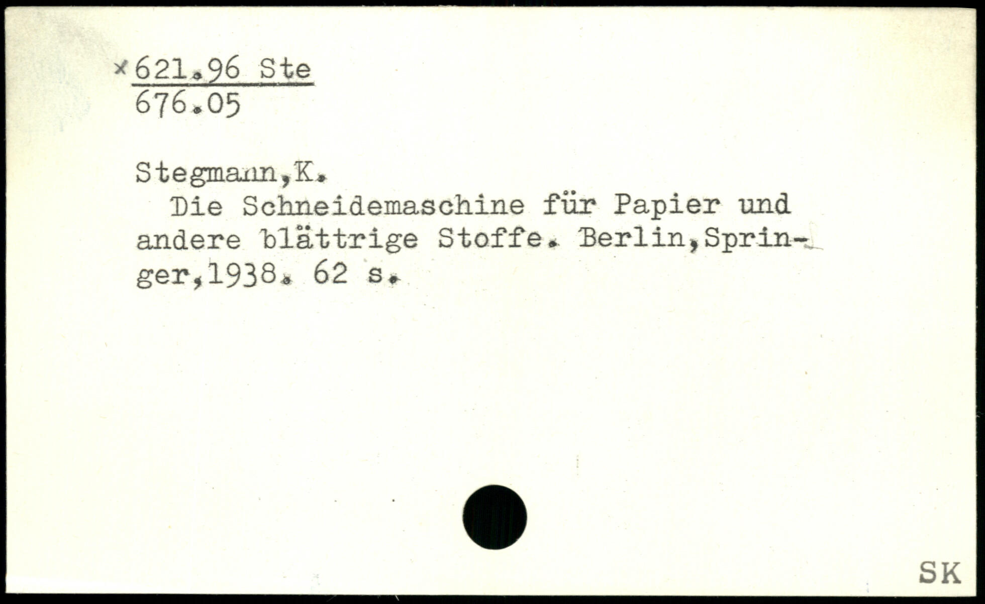 Die Schneidemaschine für Papier und andere blättrige Stoffe. Berlin,Sprin-. ger,1938.
