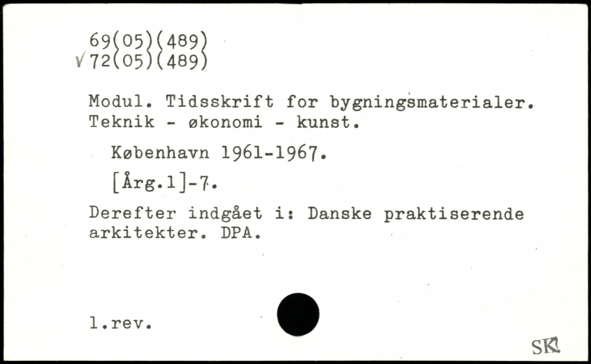 Modul. Tidsskrift for bygningsmaterialer. Teknik - økonomi - kunst.